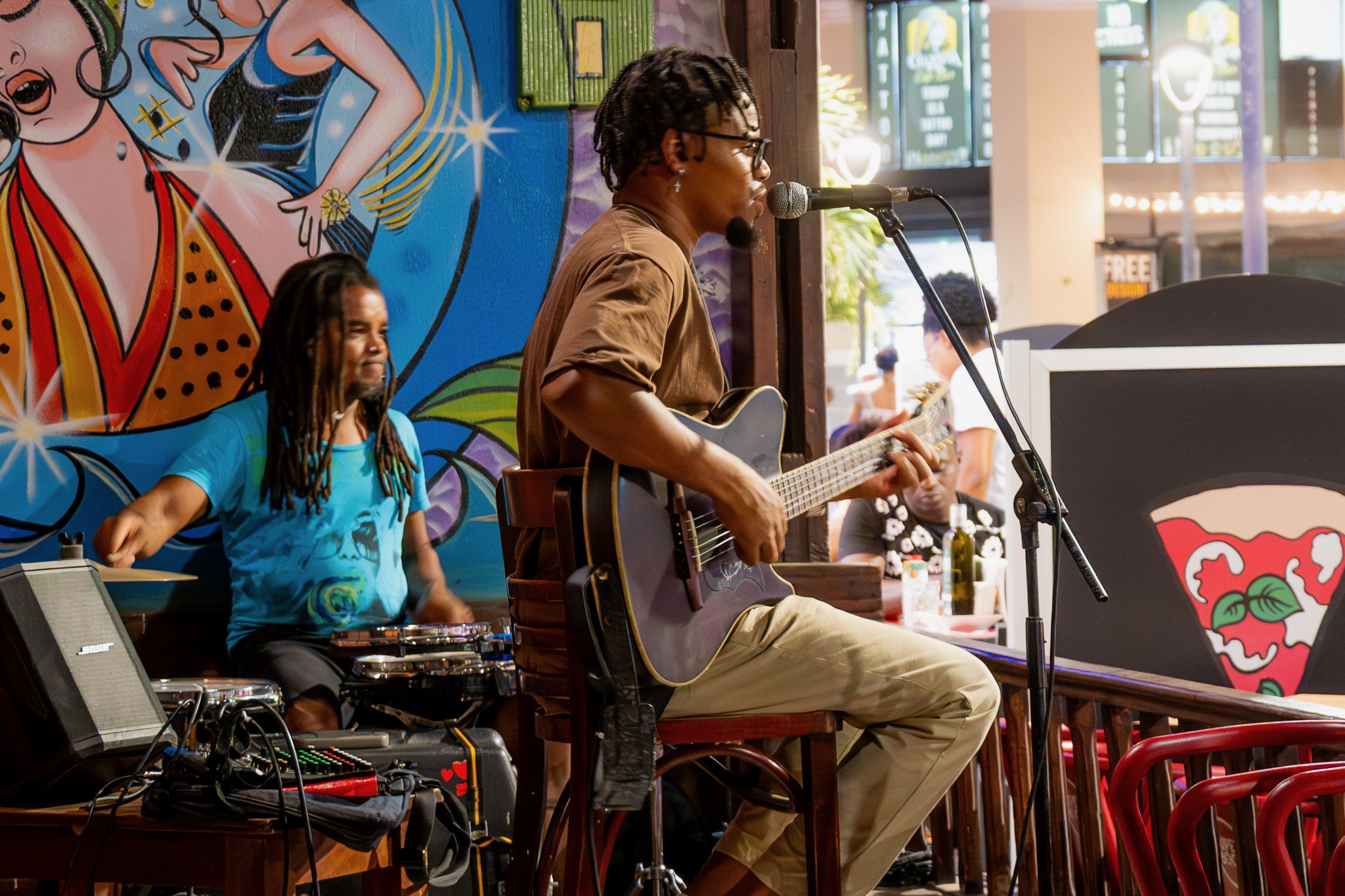 Calema Santa Maria’s best Live Music Bar! Get ready for an unforgettable experience as our stage comes alive with the sounds of talented local musicians, creating the perfect ambiance to unwind and groove. From soulful melodies to upbeat tunes, there’s something for every music enthusiast. Live music starts every day at 20:00 until Midnight with a DJ after.